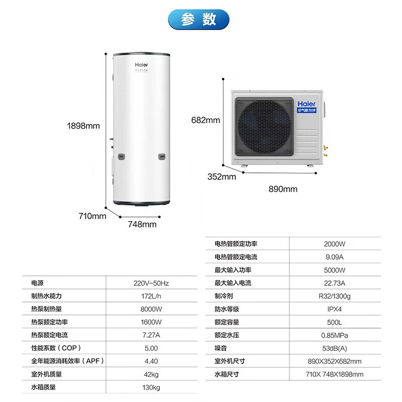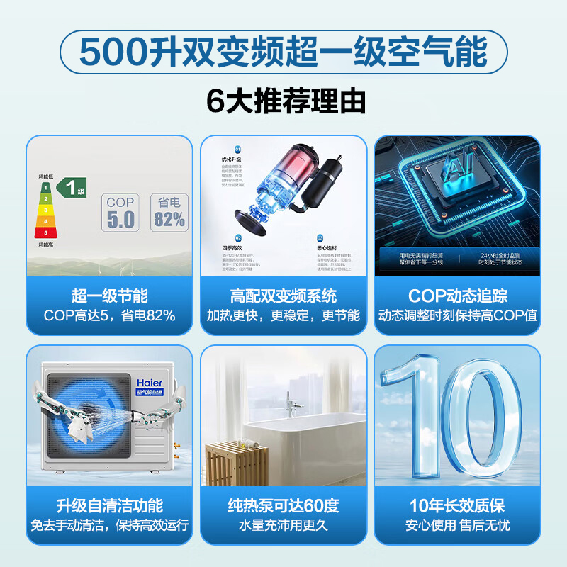 海尔空气能热水器500L升商用家用变频大容量超一级能效