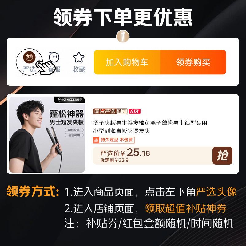 扬子夹板男生卷发棒负离子蓬松男士造型专用小型刘海直板夹烫发夹