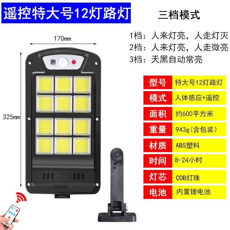 特超大号人体感应太阳能充电路灯 LED遥控路灯户外防水庭院照明灯