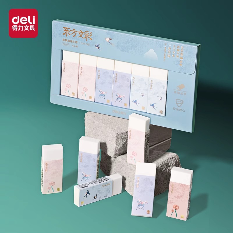 得力东方文彩橡皮擦小学生专用无屑超干净无毒铅笔2b橡皮檫可爱高颜值素描拉丝不留痕象皮美术生像皮檫