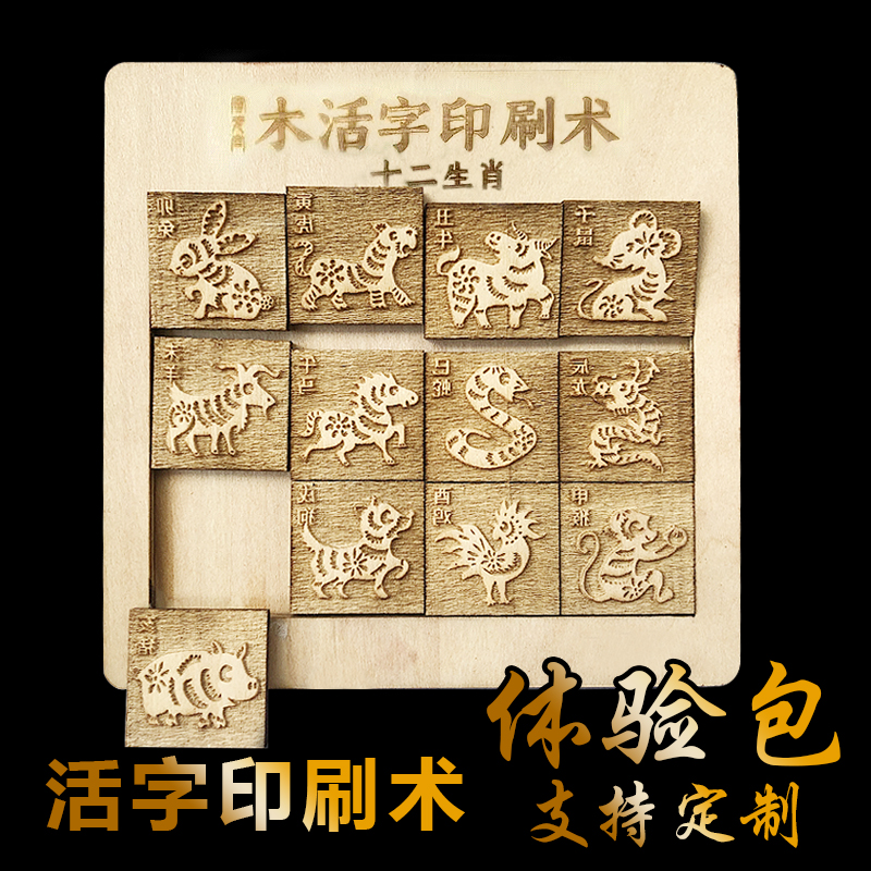木活字印刷术印版章十二生肖雕刻定制幼儿园儿童学生体验包图案LOGO课外拓展博物馆培训班展览馆课程包套装