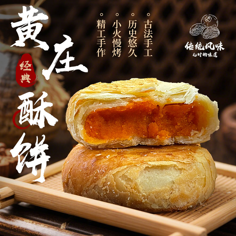 黄庄酥饼咸蛋黄月饼传统老式酥皮点心中秋特产小吃零食官方旗舰店