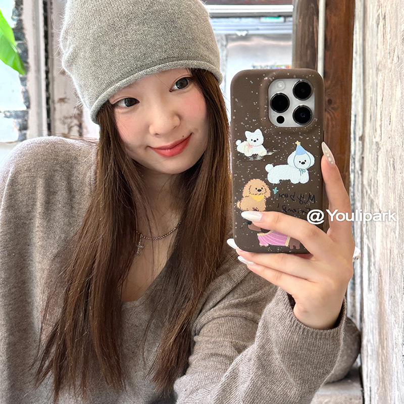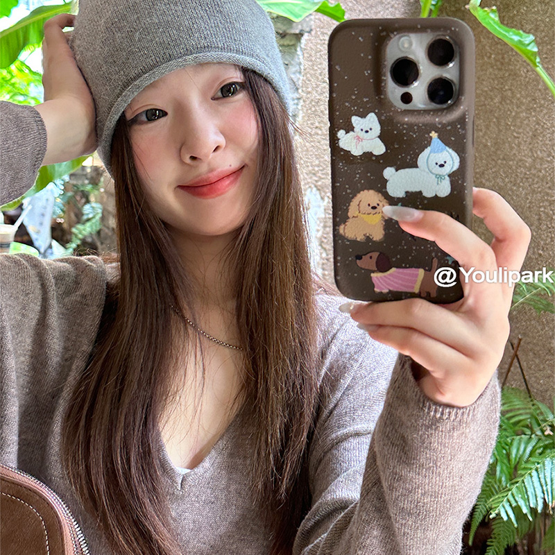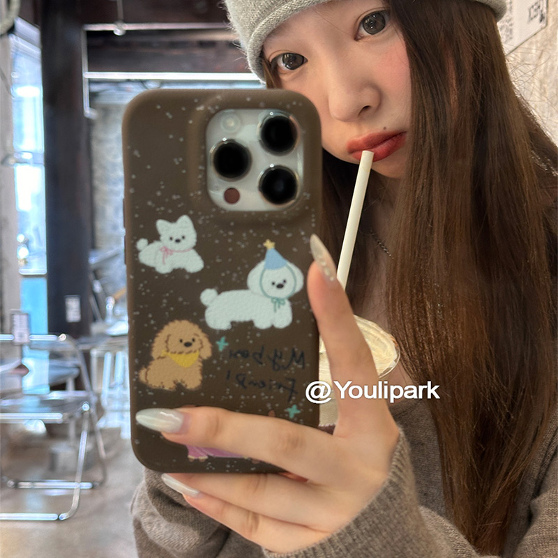 由里公园ins韩系秋冬少女可爱泼墨小狗适用12苹果15ProMax手机壳iPhone13全包新款14Pro软16Promax皮纹保护套