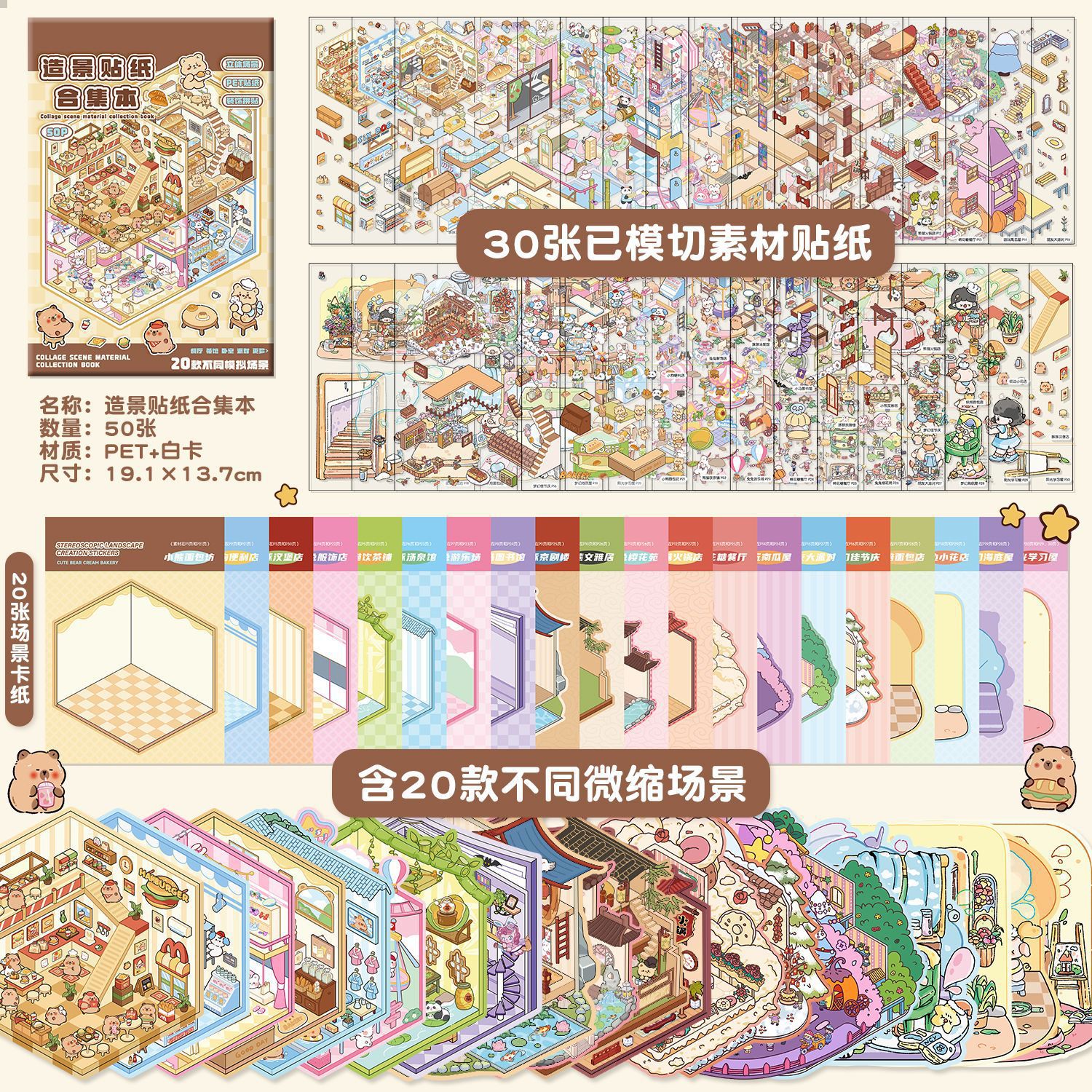 卡通造景贴纸合集本迷你3D立体小屋微缩场景动手能力diy自粘装饰