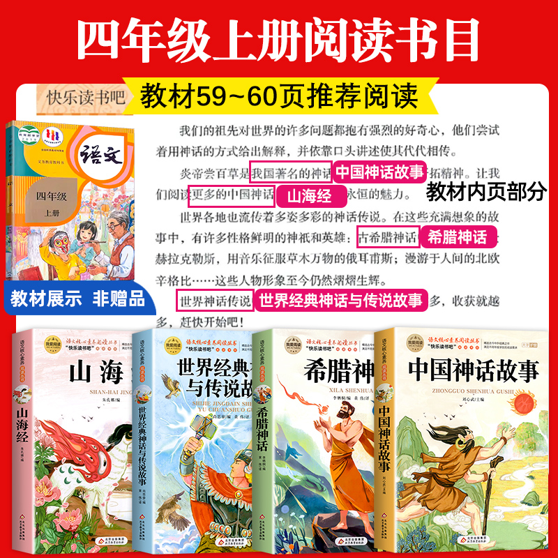 4册中国古代神话故事四年级上册必读课外书世界经典神话与英雄传说古希腊神话故事山海经老师推荐小学生版4上快乐读书吧阅读童话