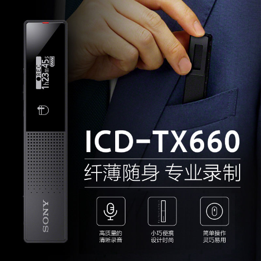 Sony索尼ICD-TX660数码录音棒录音笔小巧便携学生会议16G高清降噪