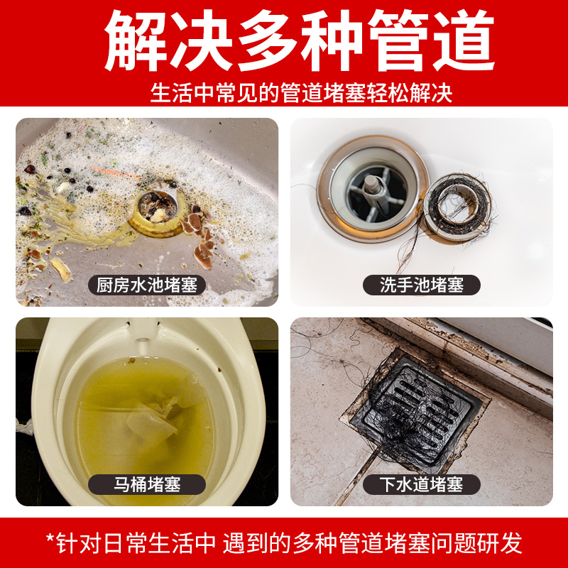 管道疏通剂强力溶解通下水道厨房厕所油污粉马桶地漏堵塞除臭神器