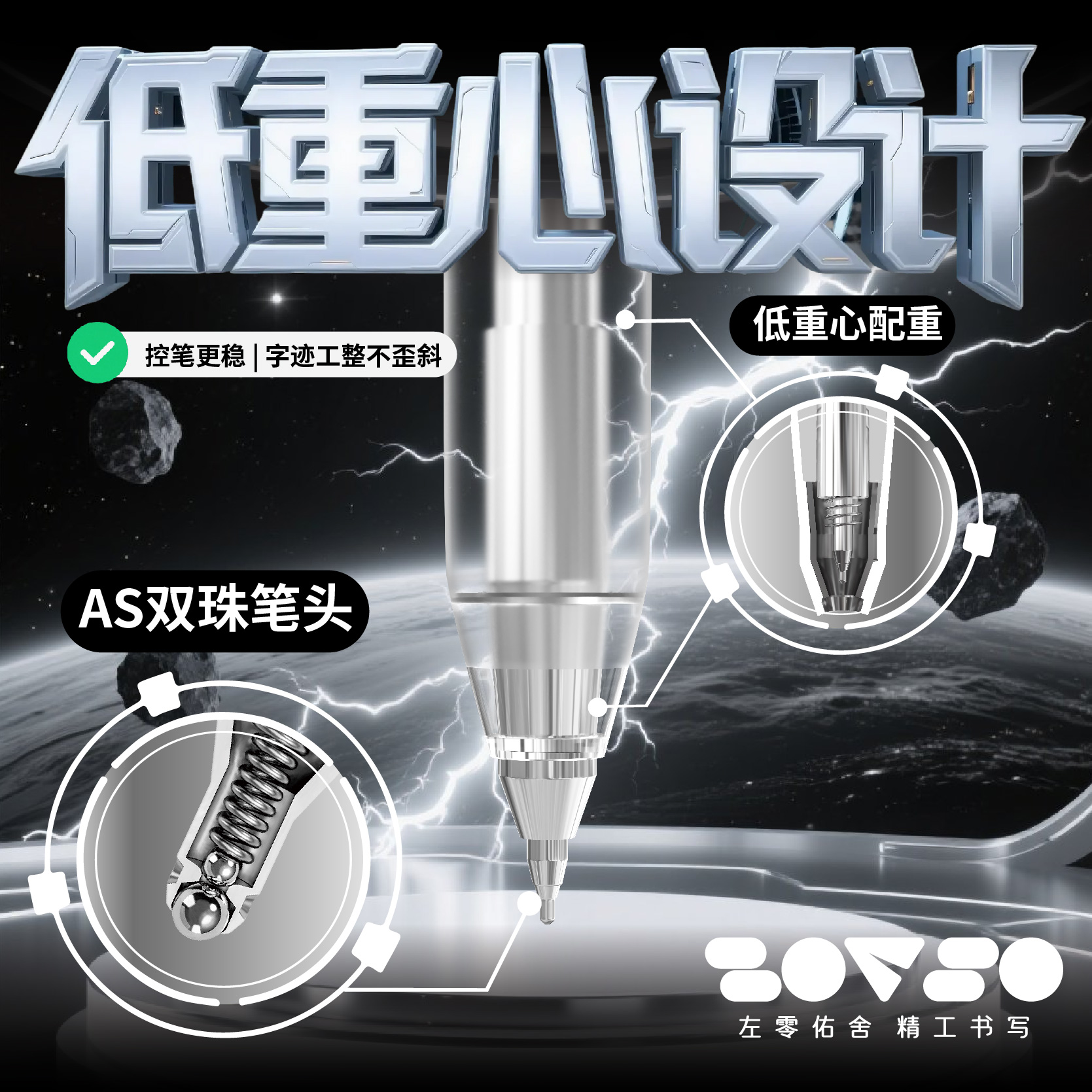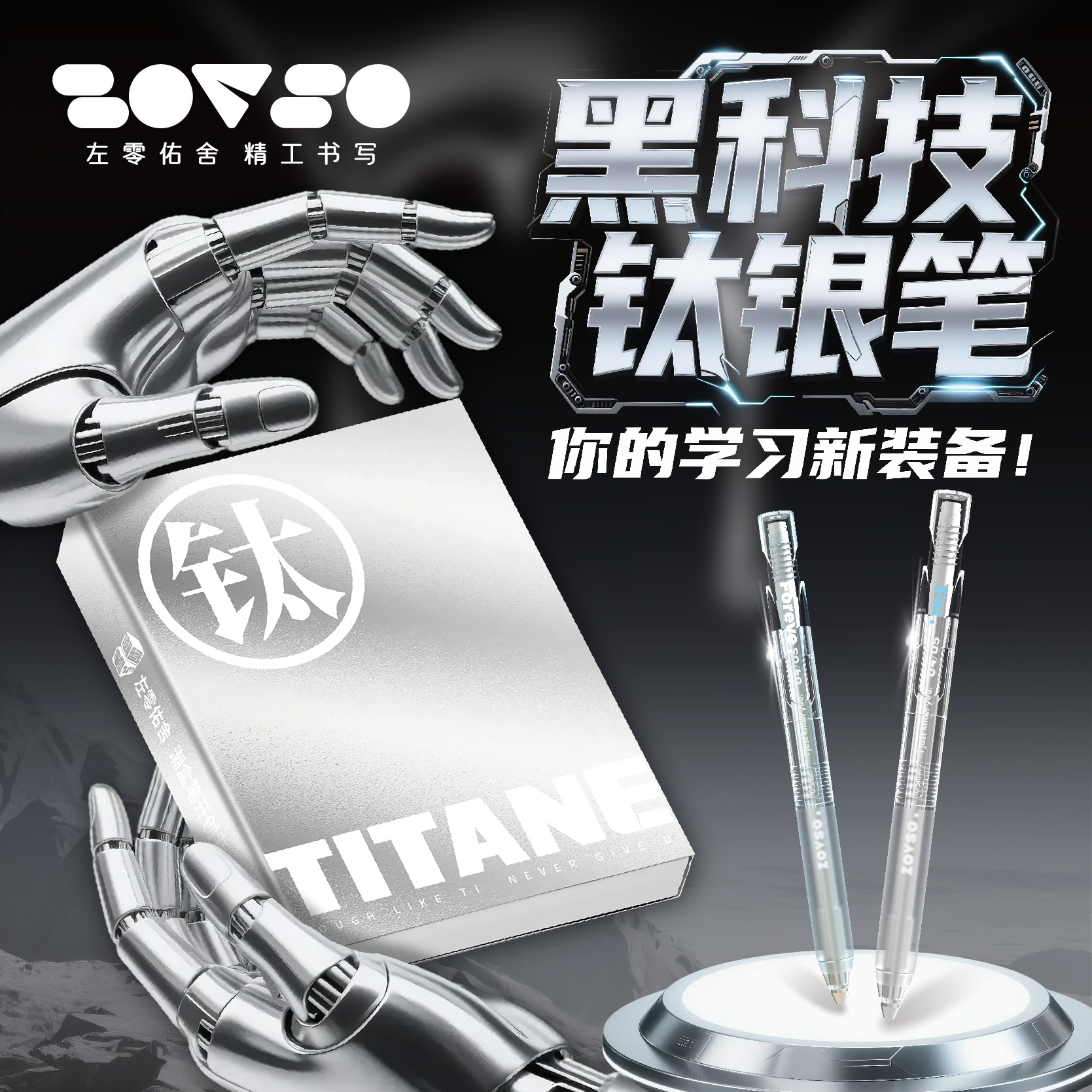 左零佑舍黑科技中性笔钛银笔高颜值ins风刷题笔全球限量按动黑色水性笔碳素速干顺滑圆珠笔小学生初中生专用
