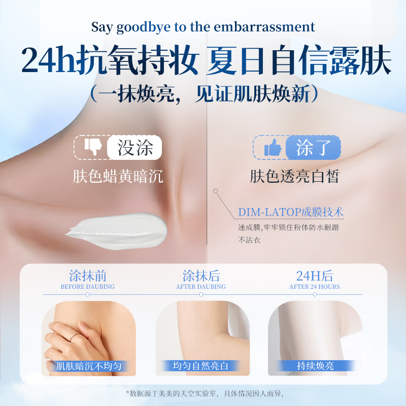huko乎刻素颜霜身体乳涂脖子脸部遮瑕全身防水不沾衣裸妆婚礼新娘