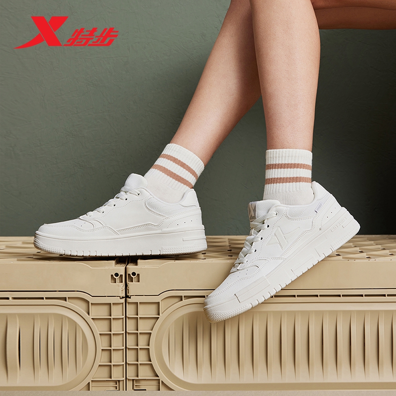 特步小白鞋女鞋秋季情侣休闲鞋子男鞋空军一号厚底百搭运动鞋板鞋