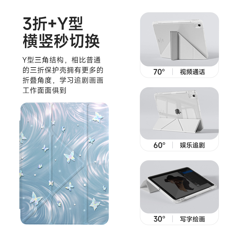 唯鑫V-SION蓝色琉璃适用ipadair保护套2025款pro11保护壳mini6苹果平板10轻薄亚克力带笔槽Y折防弯防摔旋转