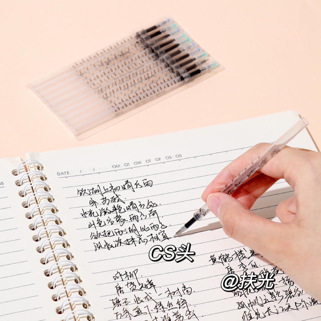 自勉线条狗速干CS头顺滑不断墨可爱按动笔芯学生考试刷题用黑笔芯