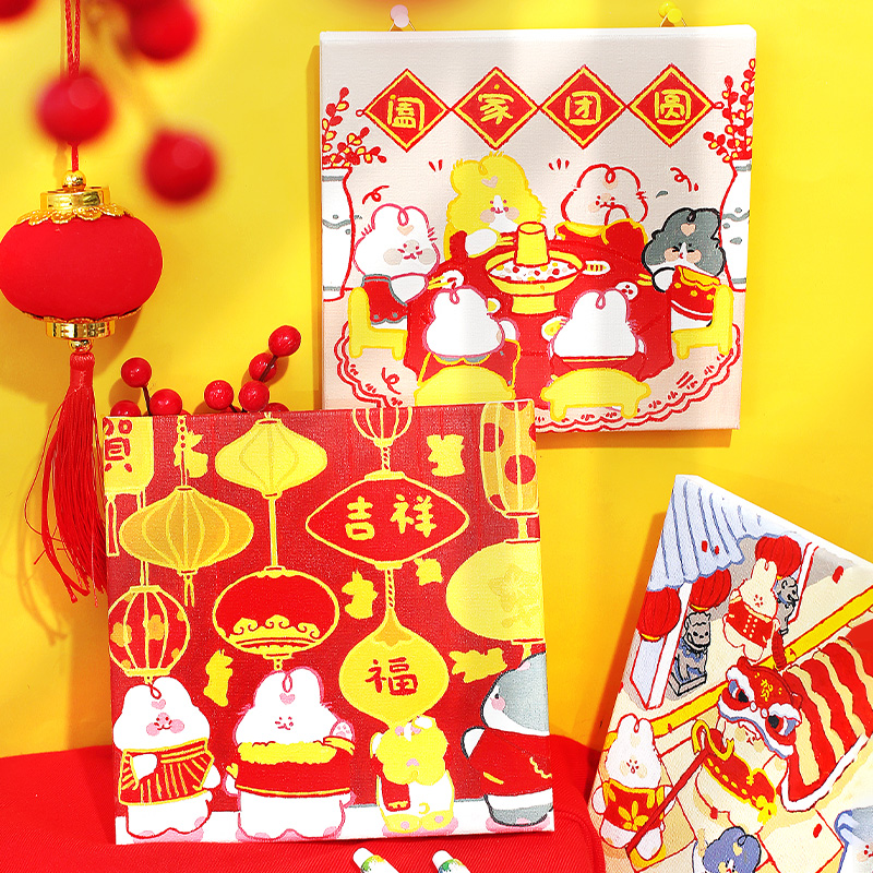 创意儿童画手工涂鸦绘图初学者新年礼物家居装饰DIY数字油画吉兔送福系列春节新春礼物可爱软萌小兔子