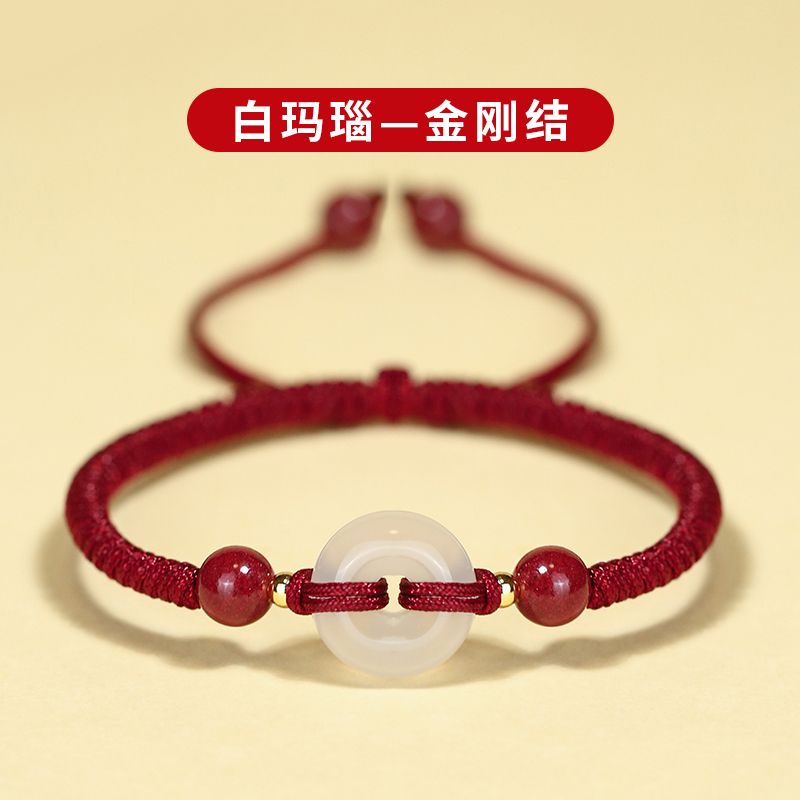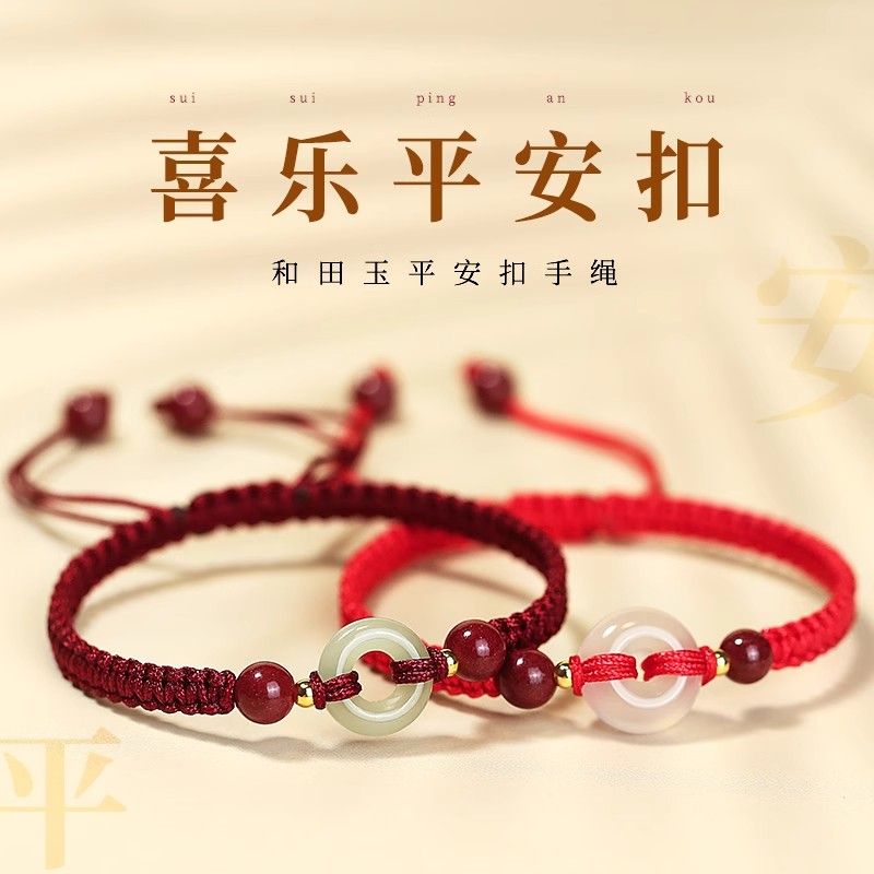 泛洛轻朱砂玉髓平安扣手绳本命年红绳金刚结手链国风送朋友