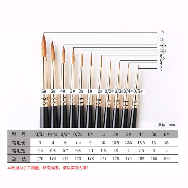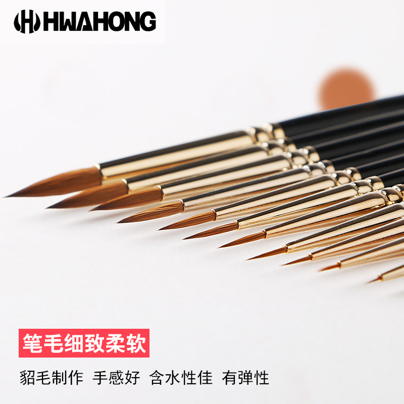 韩国进口hwahong华虹610勾线笔描线笔西伯利亚貂毛极细手绘水彩笔丙烯笔油画笔细节描述笔勾勒毛笔绘画细节