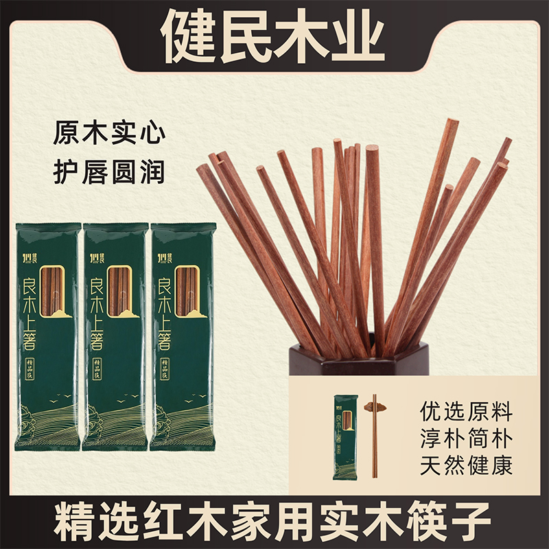 天然原木无漆无蜡实木筷红檀木鸡翅木筷子防霉防滑原木厨房家庭装
