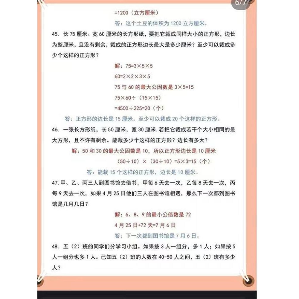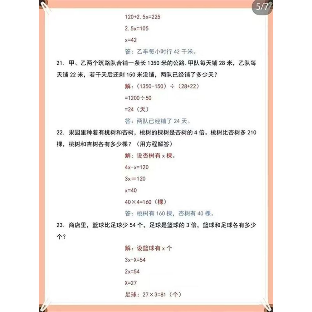 五年级数学60道妈妈题必考知识点及常用考试重点真题练习复习资料
