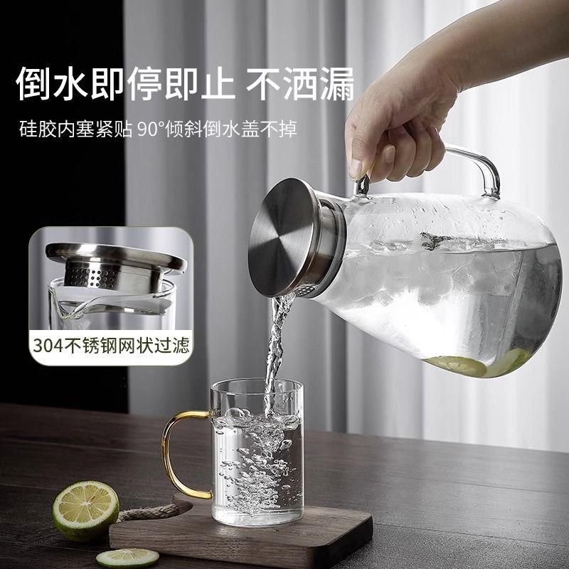 青苹果冷水壶玻璃耐高温家用大容量凉水杯泡茶壶套装开水瓶高硼硅