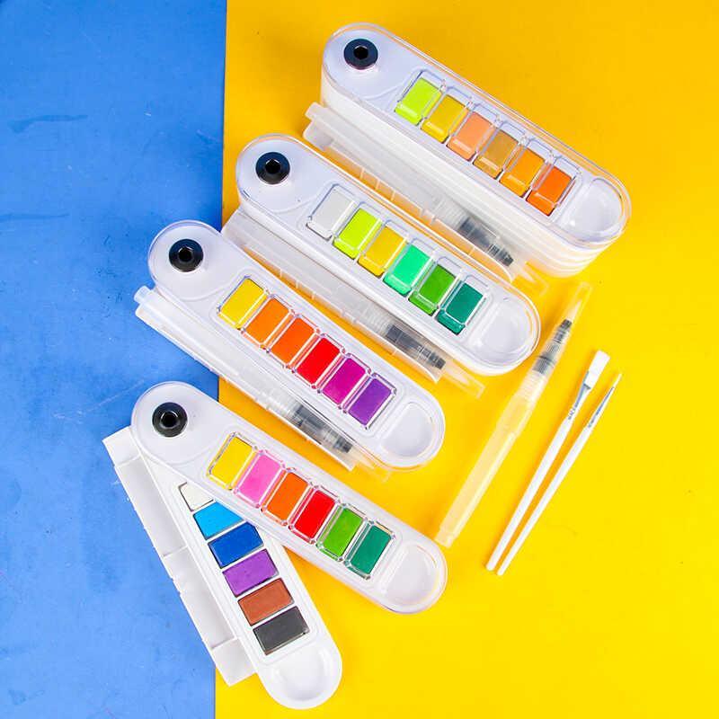 扇形盒装固体颜料12色便携水彩粉涂鸦学生画画初学者美术水粉填色