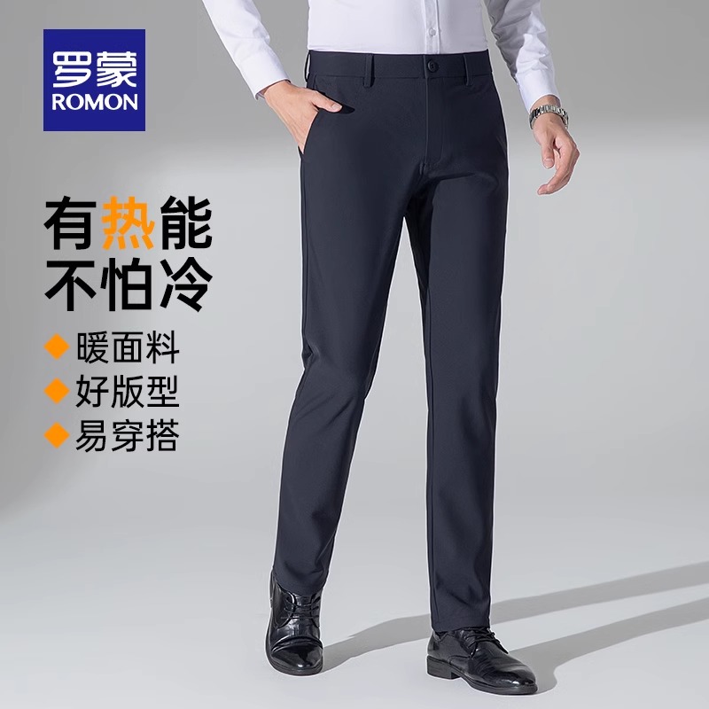 【加绒免烫四面弹】罗蒙男士休闲裤2025冬季新款商务工装直筒西裤