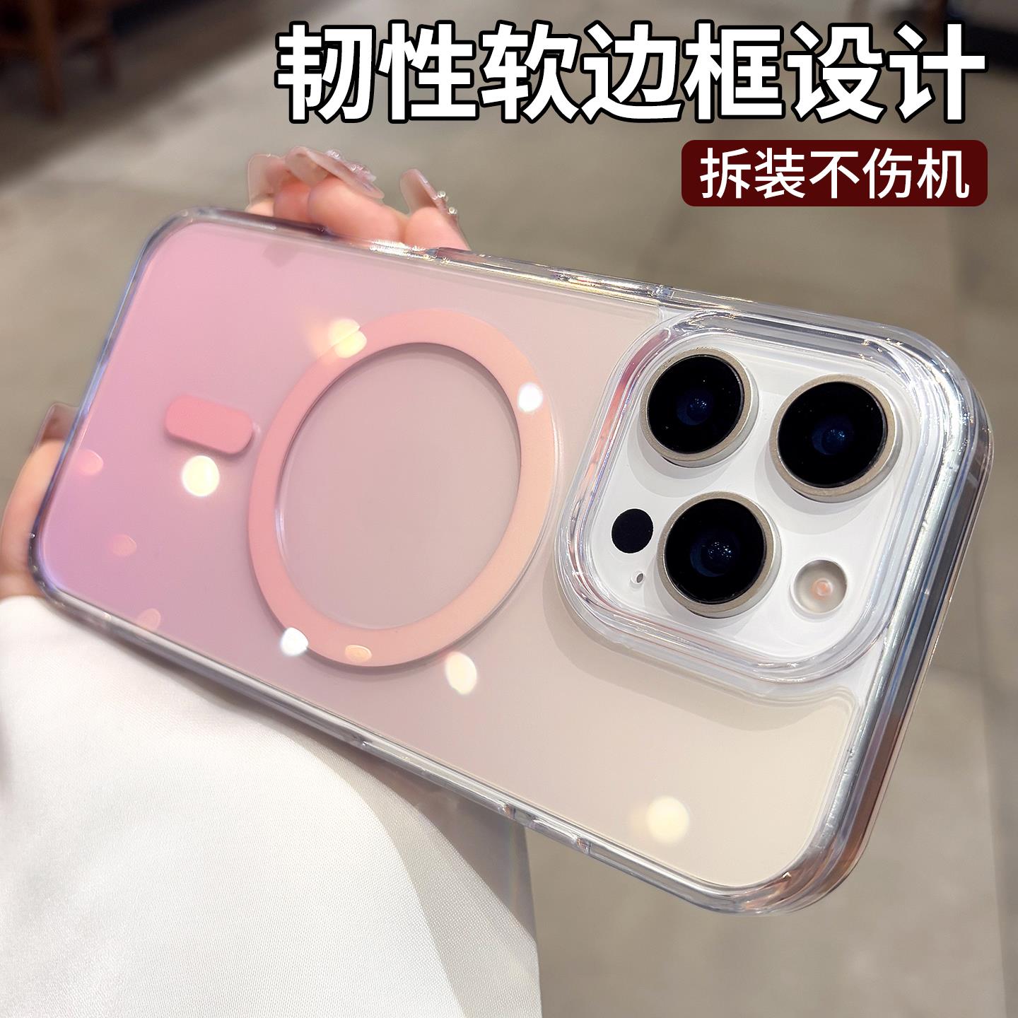 透明渐变高级感适用苹果16promax手机壳新款iphone15pro磁吸充电14好看独特的13pm外壳16plus女款ip保护套