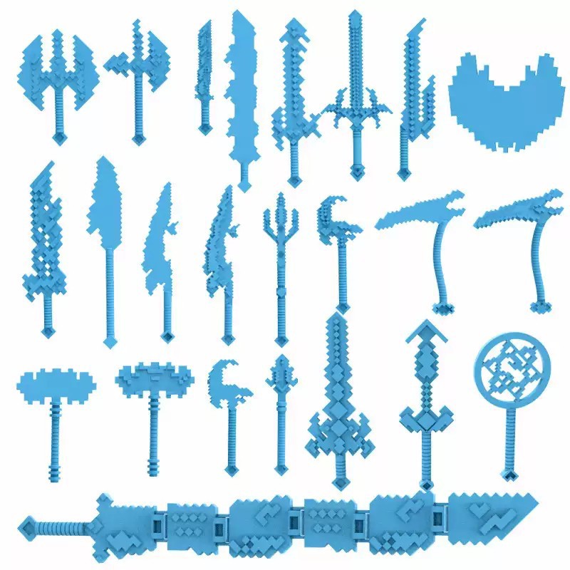 我的积木世界烦人村民午夜潜行者钻石剑三叉戟战神之蛇刃武器拼装