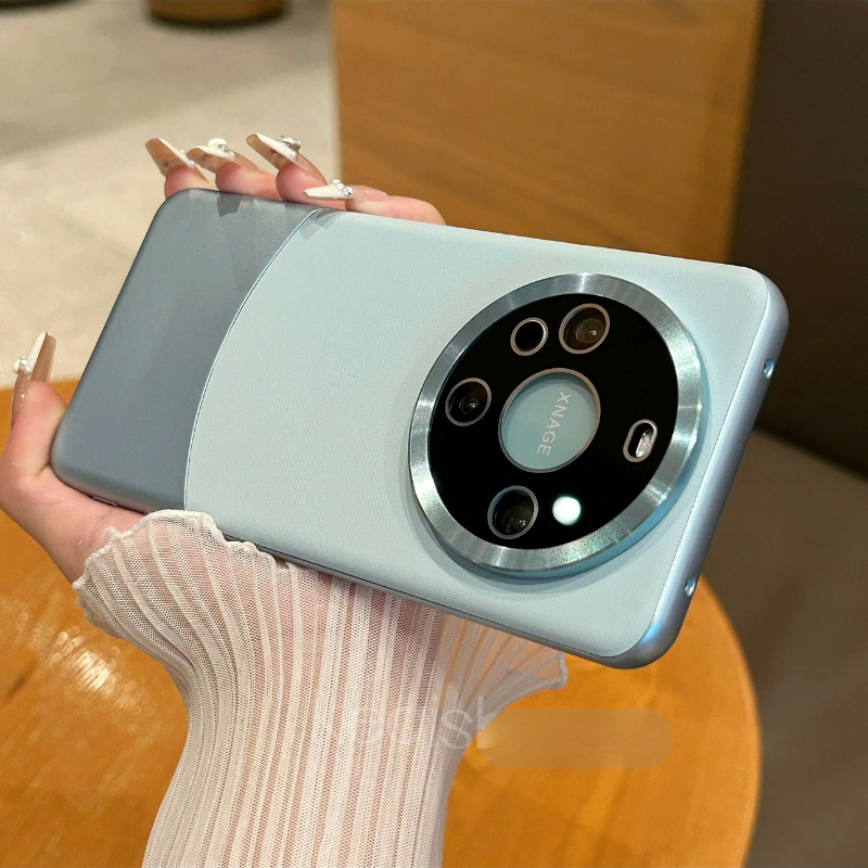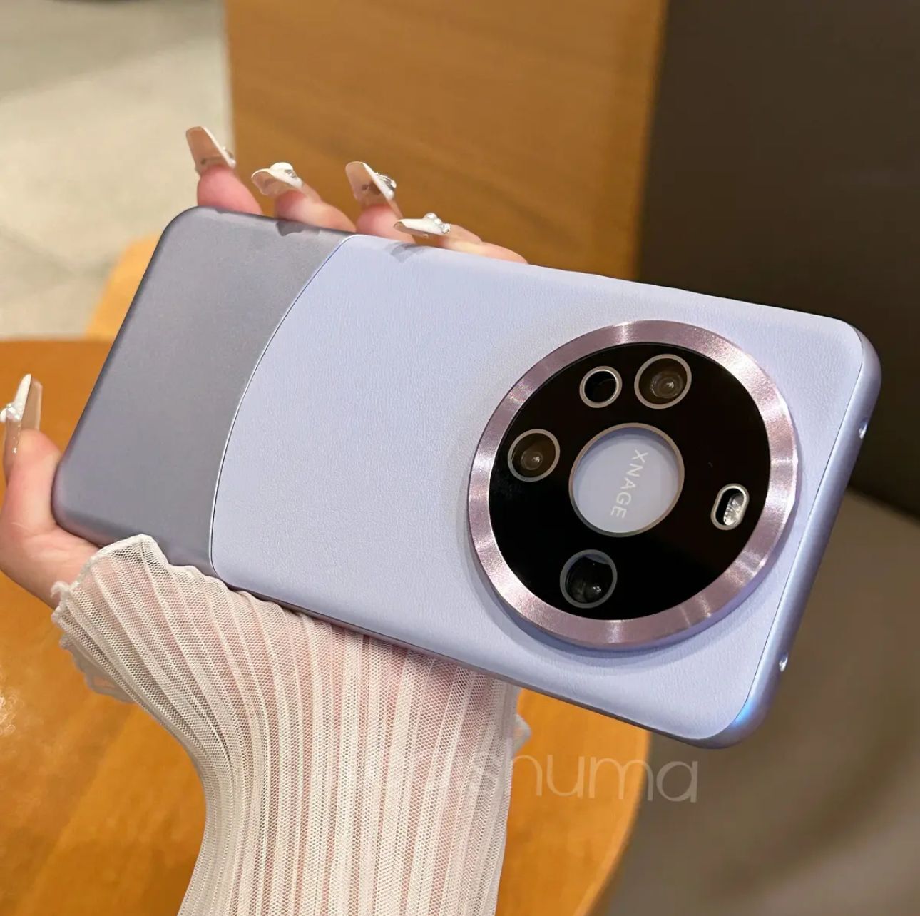 适用华为mate60pro手机壳素皮拼接玻璃镜头mate60新款高级感60pro+创意简约60pro情侣60不会撞壳的全包手机套