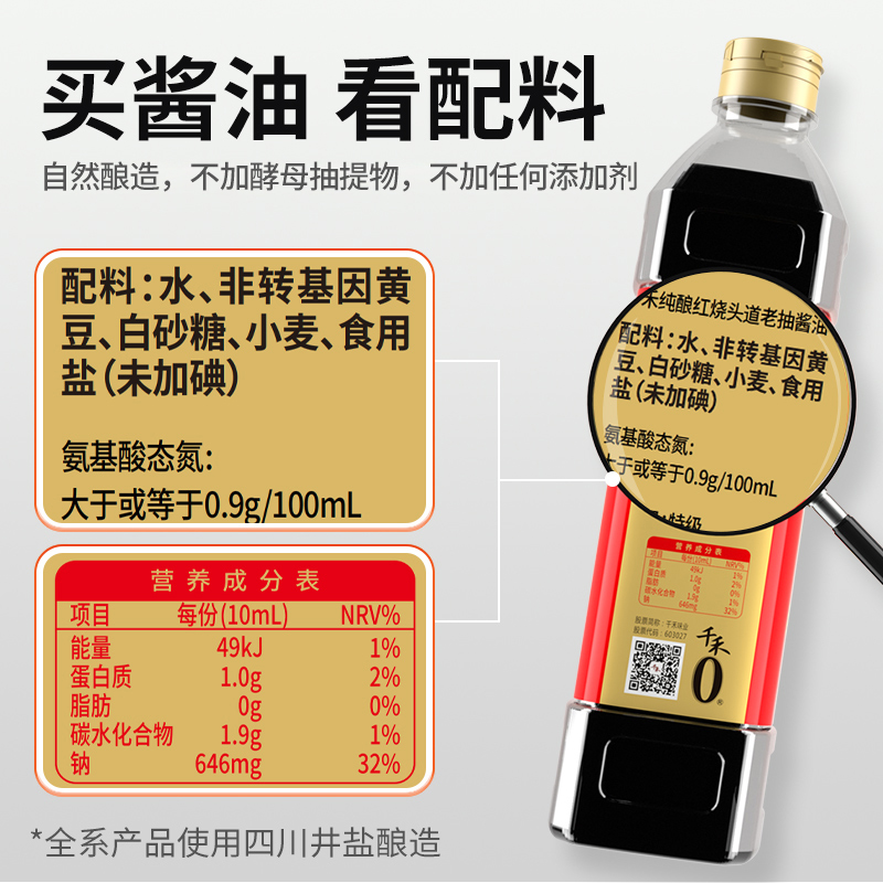 千禾红烧酱油1L厨房调味品老抽顿卤煮家用料上色头道食用一级鲜味