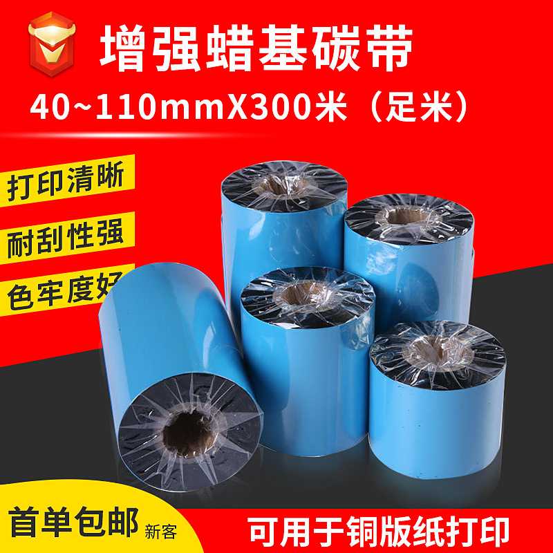 新款直销蜡基碳带卷110x300m铜版纸打印机条码标签贴纸色带跨境碳