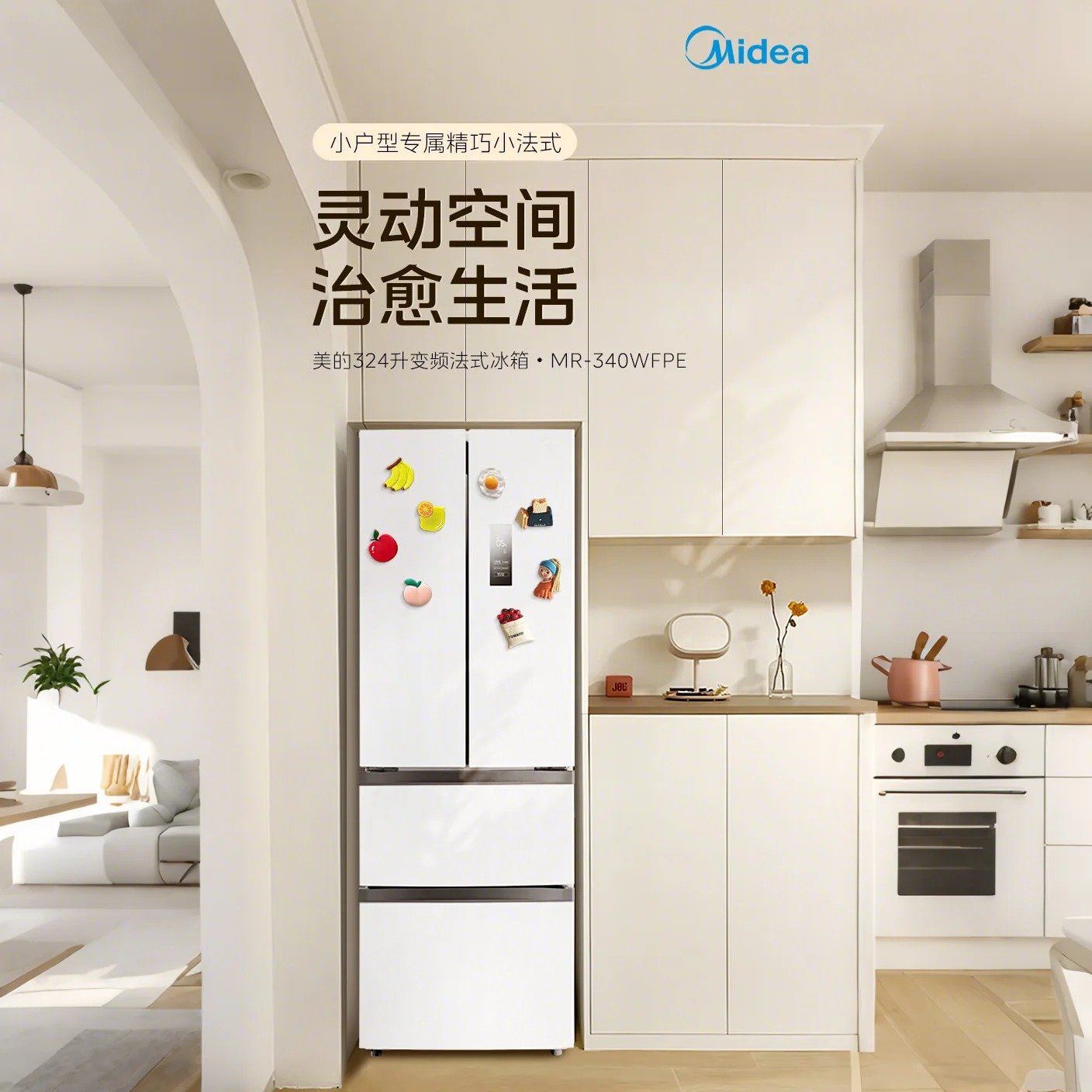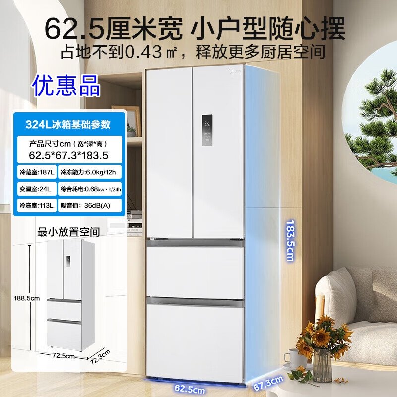 Midea/美的 MR-340WFPE小户型法式变频多开双开四门白色家用冰箱