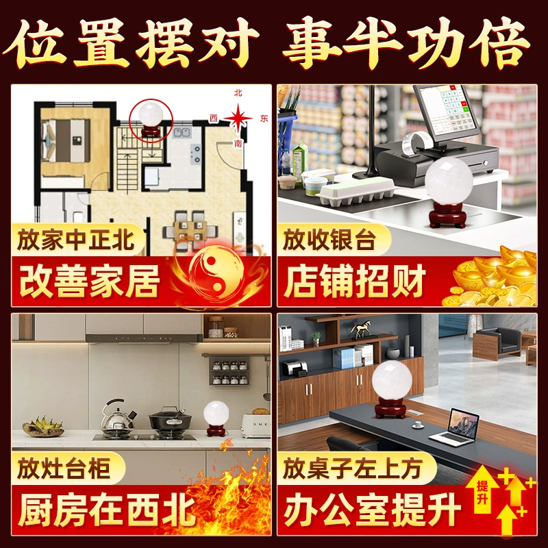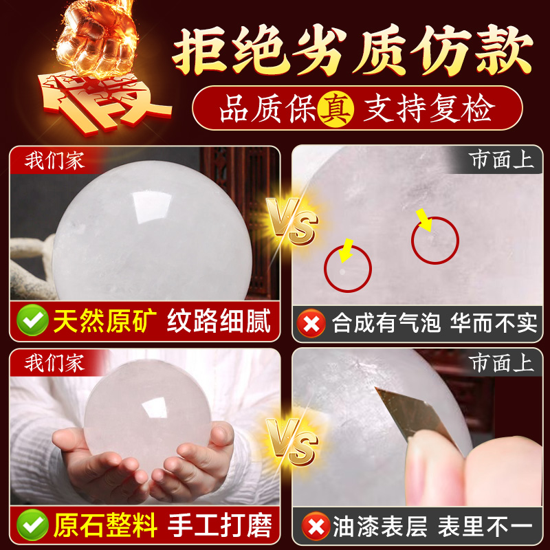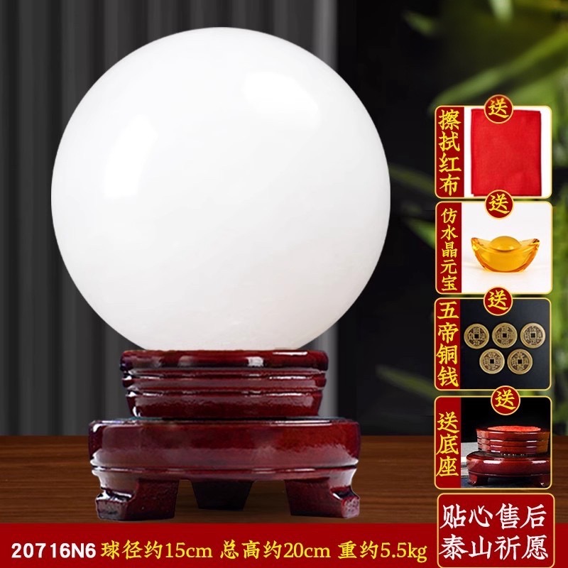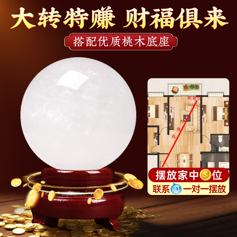 天然原石水晶球白水晶冰洲球白色玄关石球摆件办公室招财客厅桌面