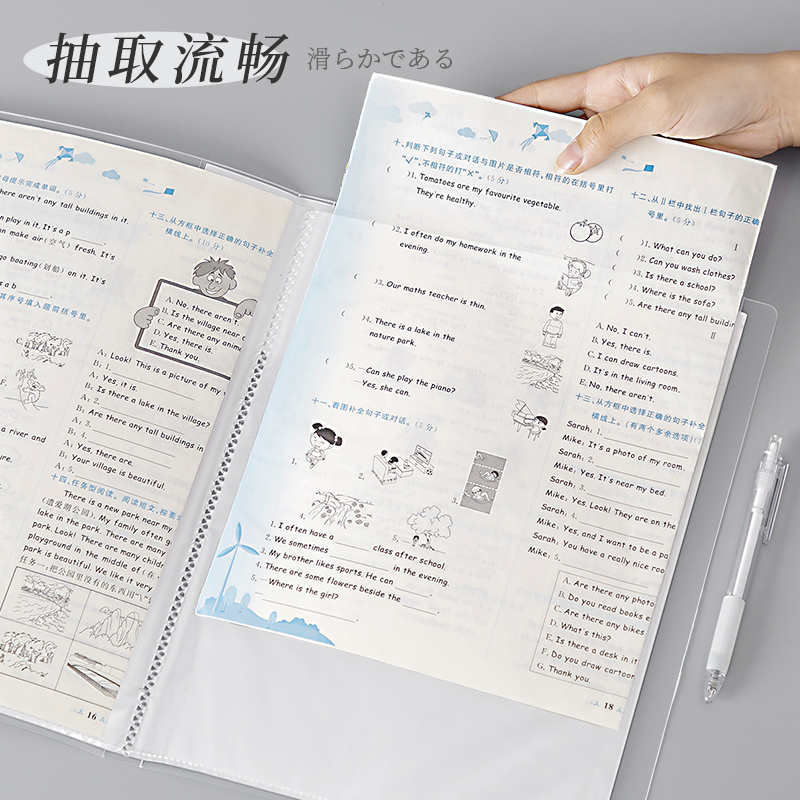 透明a4文件夹小学生专用插页资料册60页100档案夹奖状证书收纳册活页试卷整理卷子夹乐谱夹子琴谱孕检收纳袋
