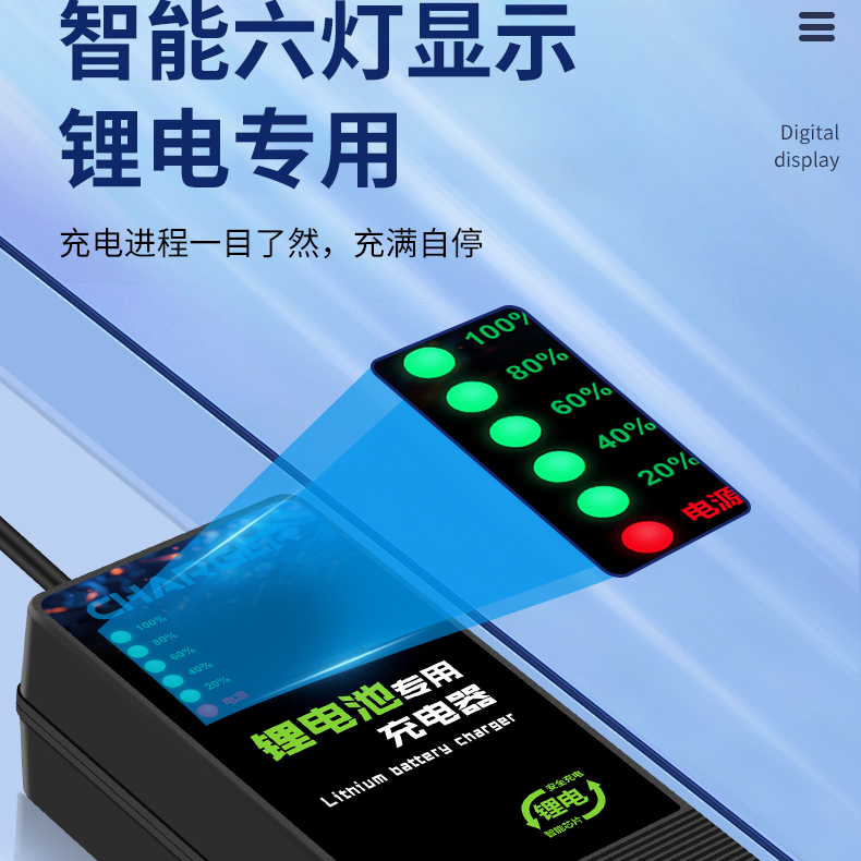 60V8A锂电池充电器67.2V71.4V73V3A5A6A7a三元电瓶磷酸铁锂电动车