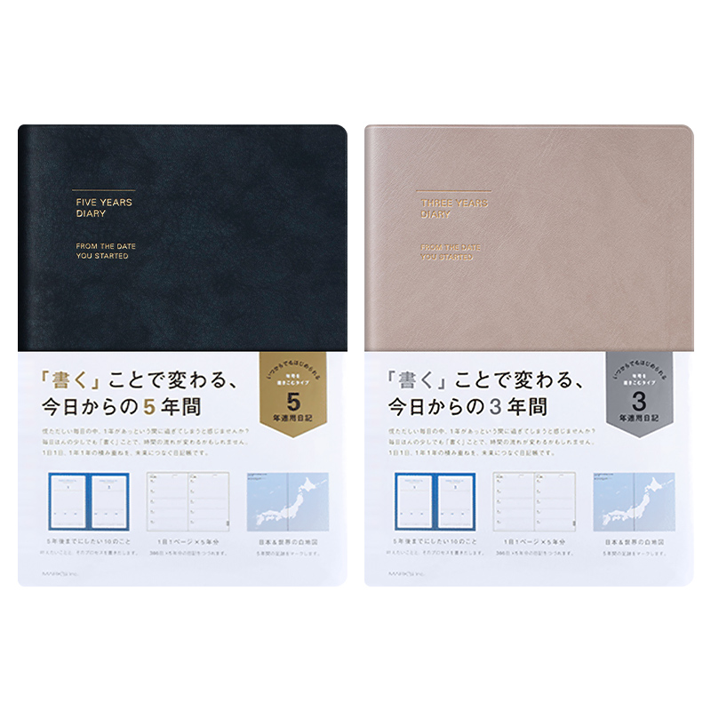 【送2支笔】日本marks五年日记笔记本子软面三年连用手账