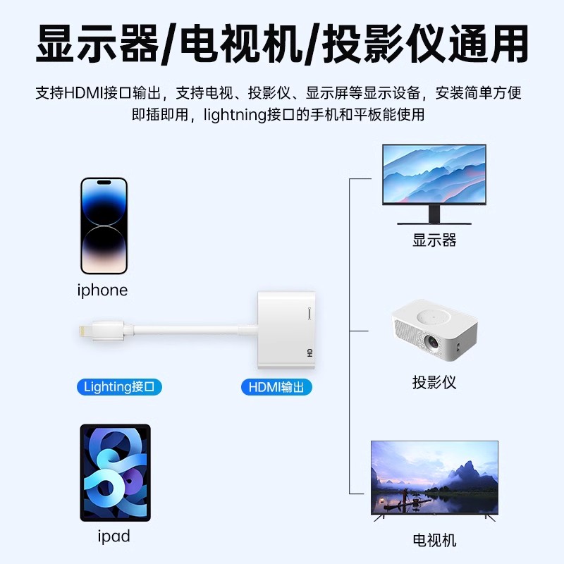 ULT-unite 适用于苹果转HDMI高清同屏线手机iPadmini平板Lighting接口转换器接显示器电视机投影仪转接iphone