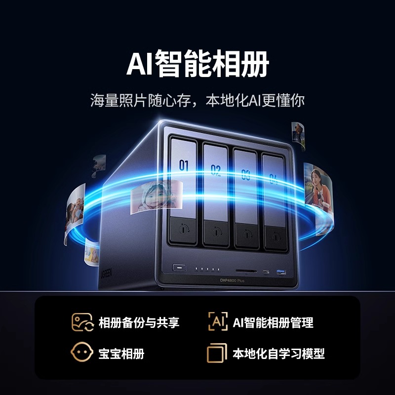 绿联私有云DXP4800Plus四盘位NAS家庭家用网络存储服务器AI相册文件同步万兆网口适用于iPhone16系列手机扩容