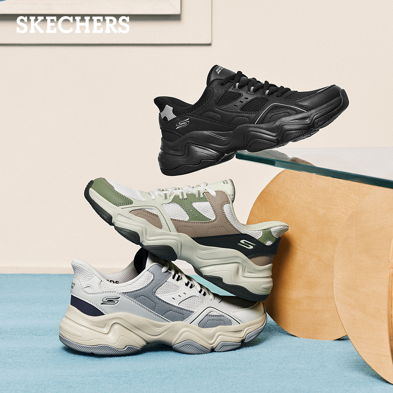 斯凯奇云朵泡芙闪穿鞋|青少年男鞋厚底增高熊猫老爹鞋运动休闲鞋
