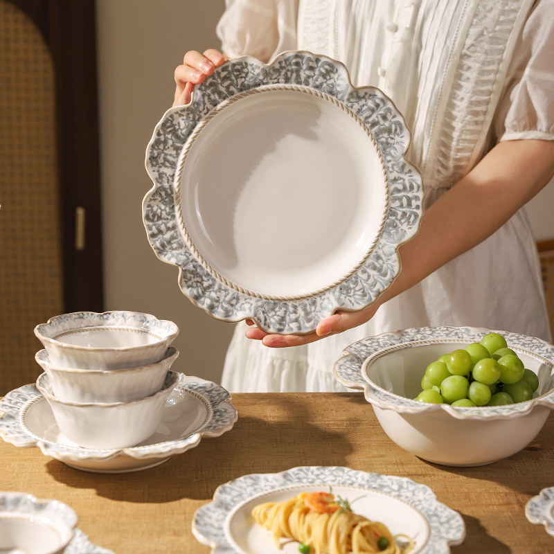 家用高级感陶瓷盘子日式瑞和手绘线条餐具套装深口菜盘精致碗碟子
