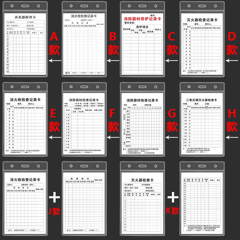 定制灭火器检查记录卡消防器材消防栓月检表消火栓年检养护卡巡查点检卡购买冲装时间配备责任部门人登记卡
