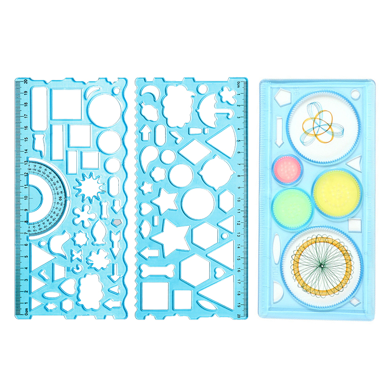 新款小学生专用尺子直尺手抄报模板尺套装画圈百变万花尺全套儿童多功能大号绘画镂空尺波浪尺画图形的文具