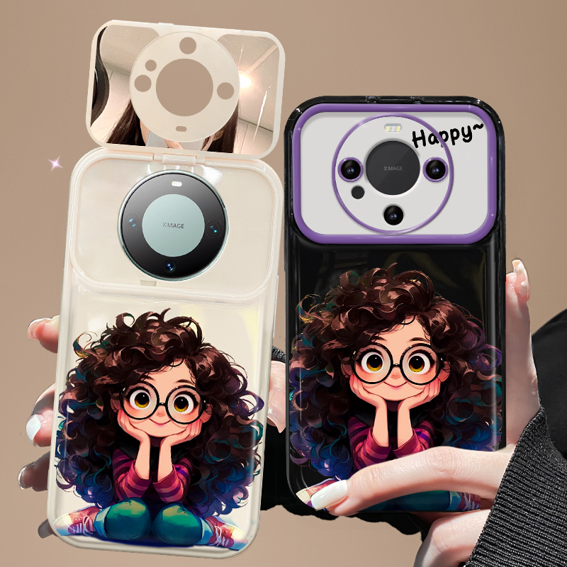 适用华为mate60pro手机壳荣耀100/90新女款大视窗p60/50翻盖镜子荣耀80/70se卷发女孩挂坠nova11/12防摔软壳
