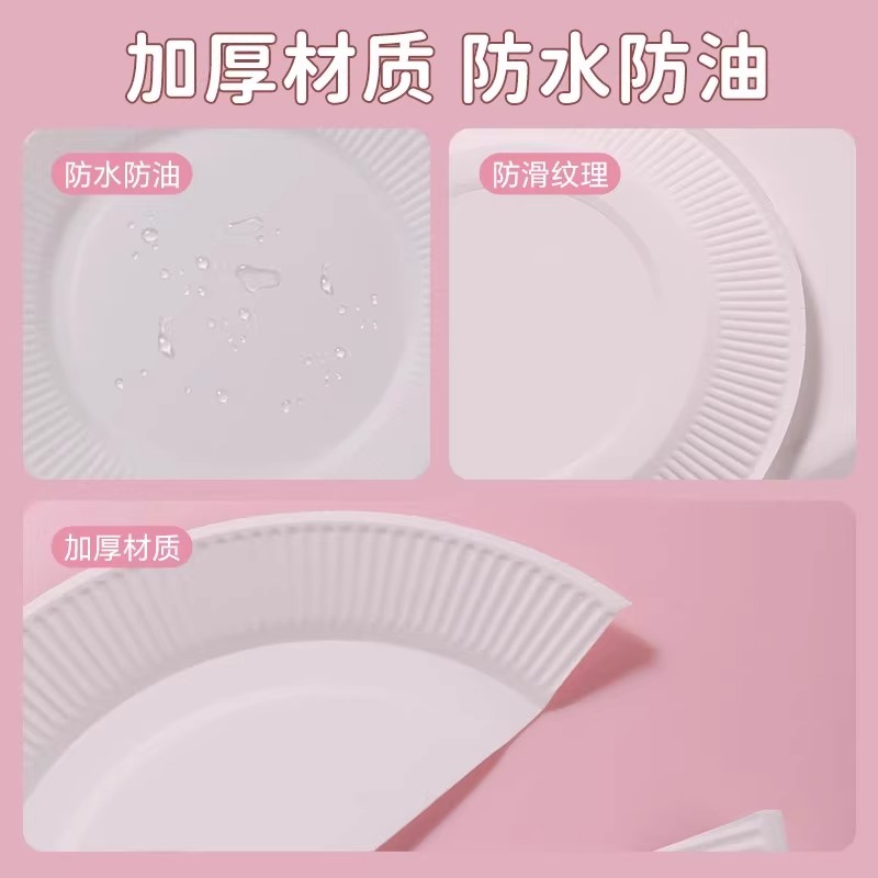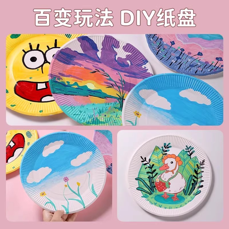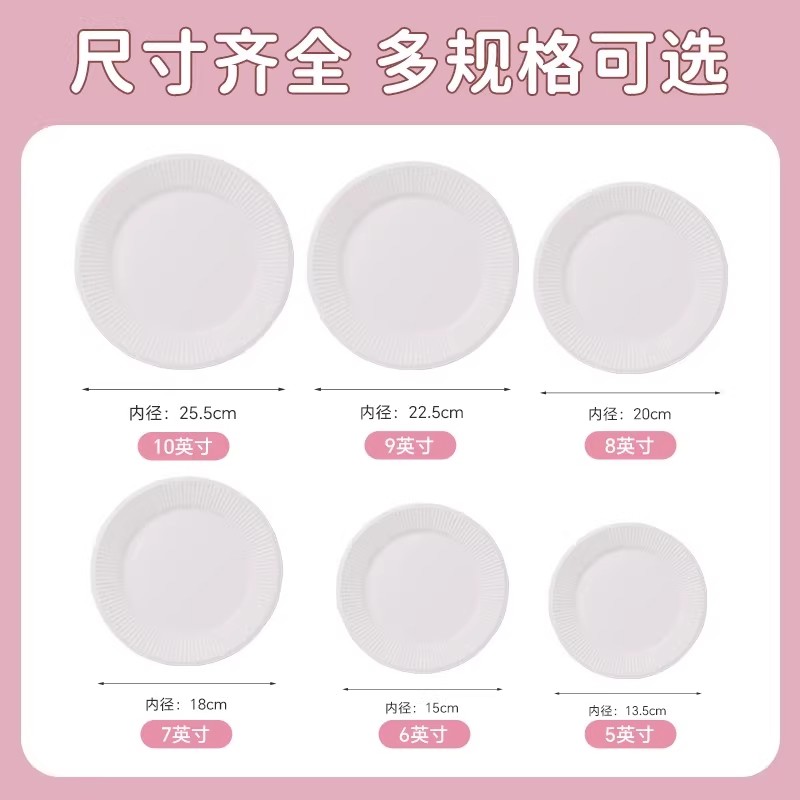一次性纸盘圆形幼儿园美术画画手工diy绘画8寸白色蛋糕盘子食品级
