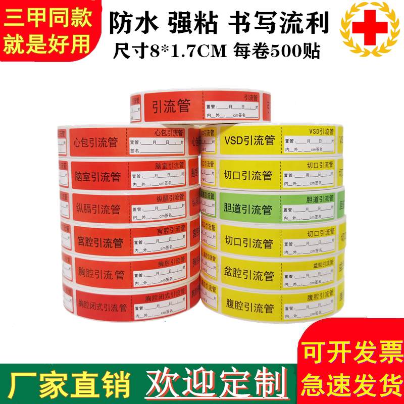 医用护理导管道标签引流管标识贴腹腔胃肠空白手写尿气置定做防水