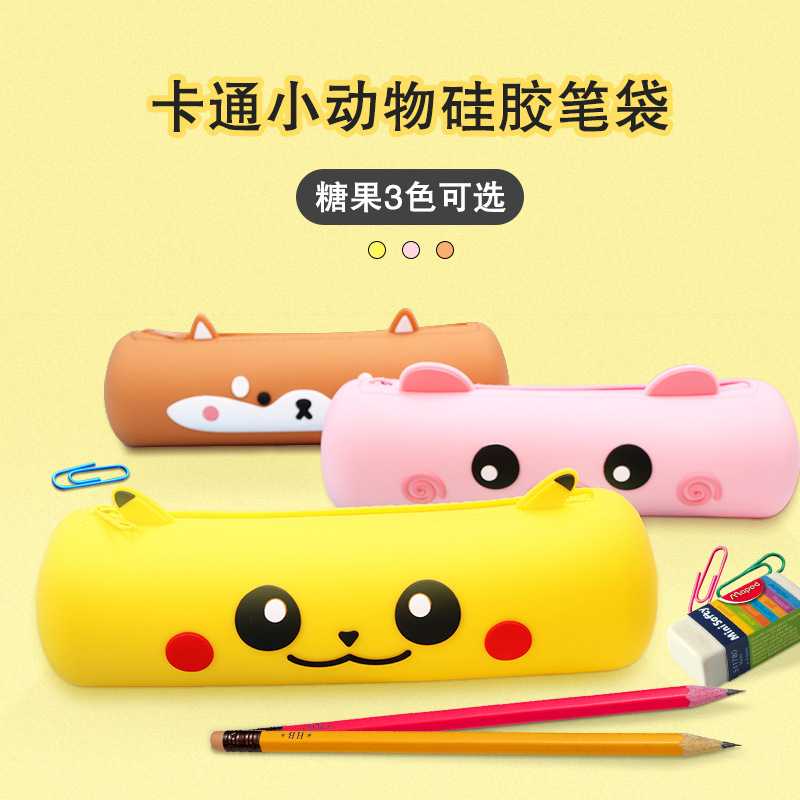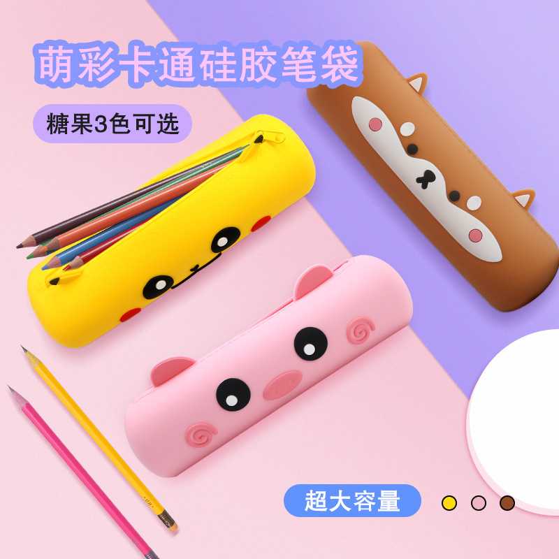 新款直销跨境新款创意卡通儿童硅胶笔袋可爱硅胶文具盒学习文具收