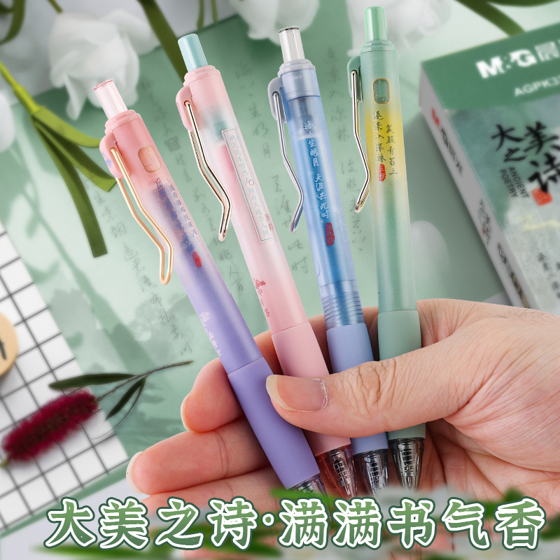 晨光大美之诗静音按动中性笔0.5st笔头黑笔速干中国风签字笔K3319