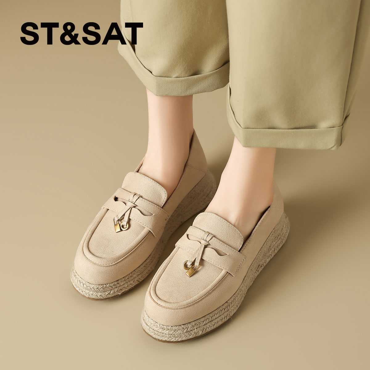 星期六复古草编一脚蹬厚底乐福鞋女2025新款软底不累脚单鞋【直】