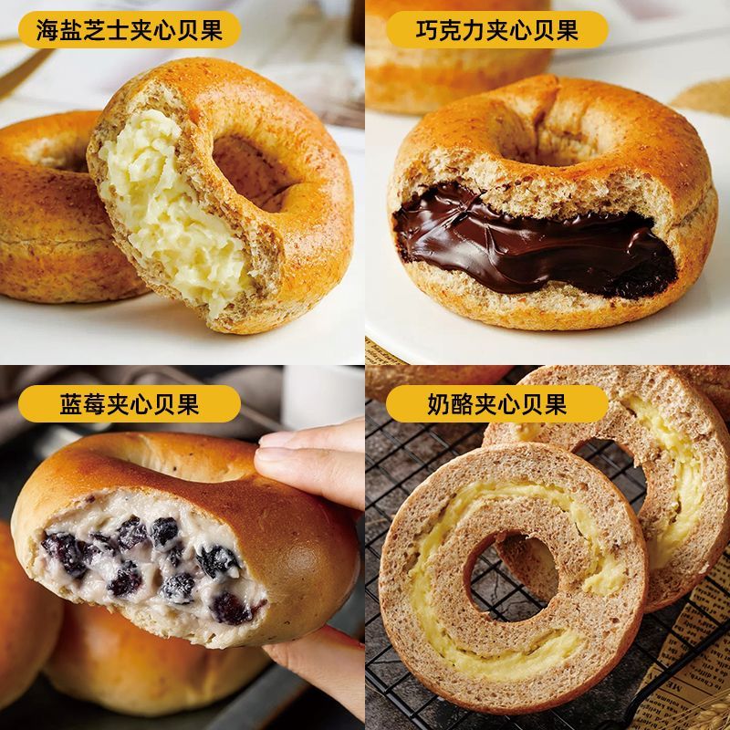 海盐芝士夹心贝果全麦面 面包抹茶乳酪巧克力健身解馋早餐减代餐
