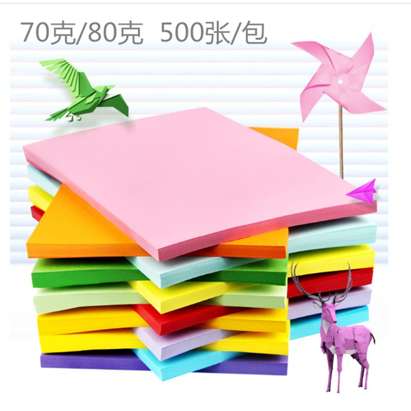 彩色A4纸打印纸复印 a4彩纸70g粉红500张 紫色手工纸蓝 黄绿橙混