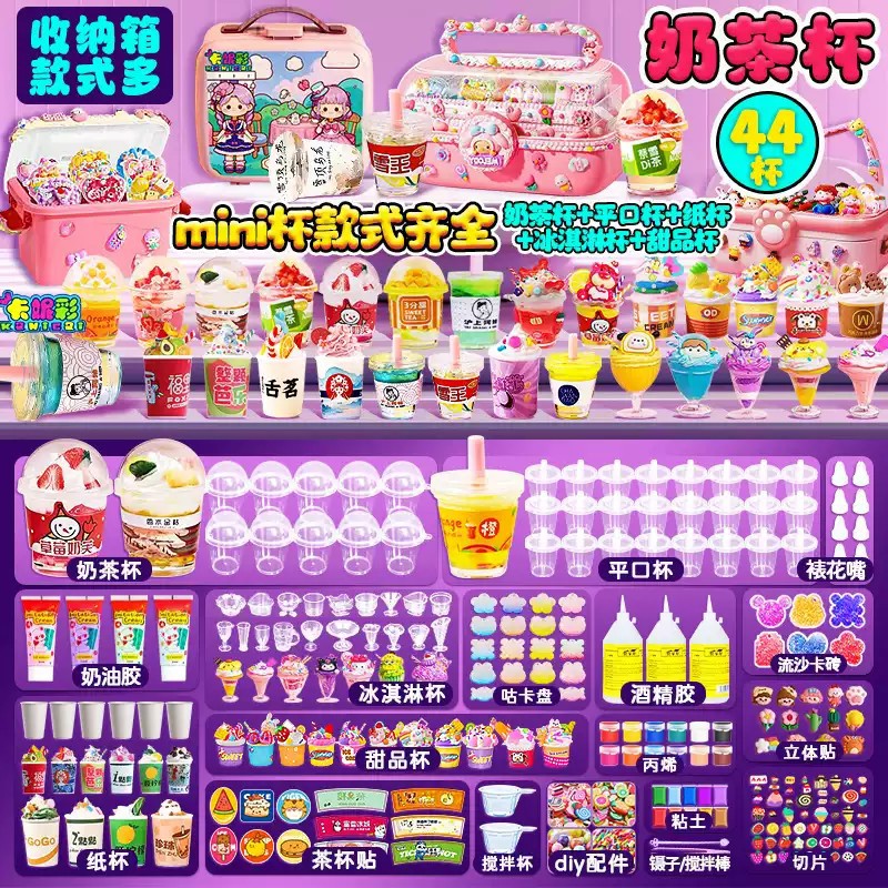 diy迷你奶茶杯手工食玩儿童玩具制作冰淇淋杯套装过家家杯子手作