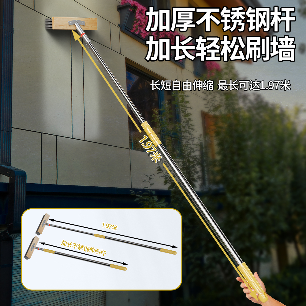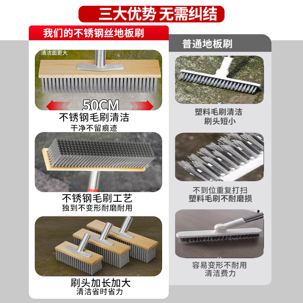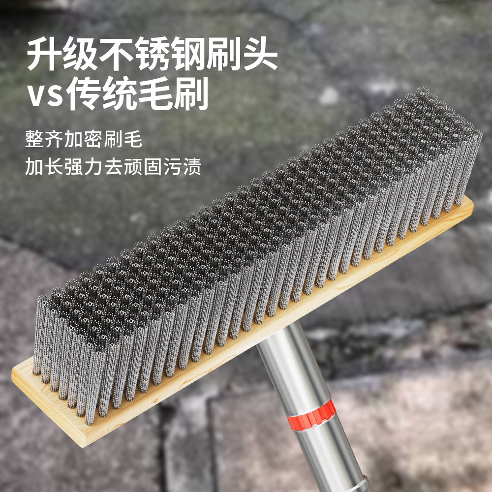 不锈钢钢丝刷地板刷子去青苔长柄清洁刷洗地神器铁刷子扫地刷钢刷